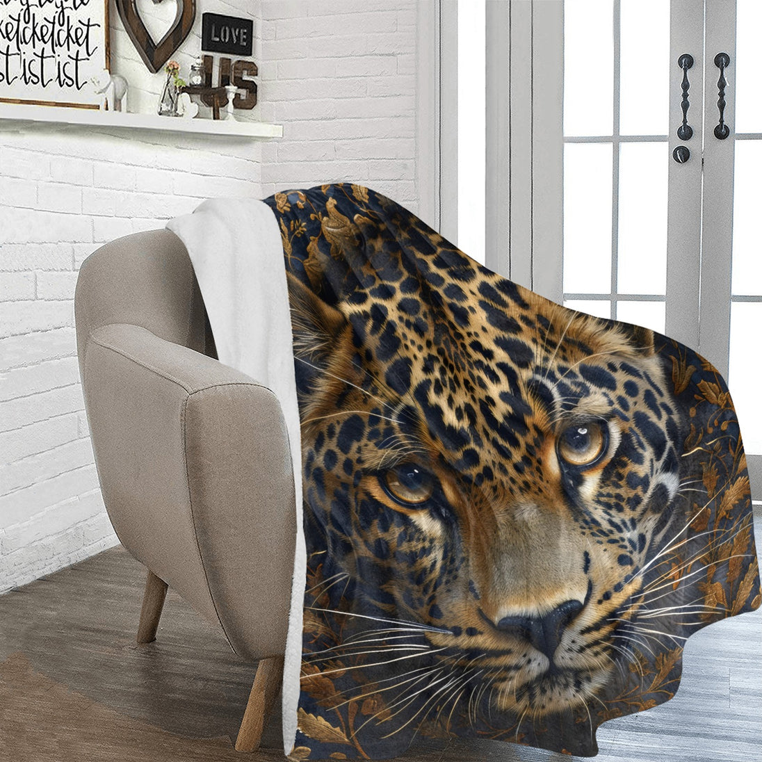 Immerse yourself in luxury and untamed beauty with the Gilded Jaguar Ultra-Soft Micro Fleece Blanket. This exquisite blanket features a captivating jaguar portrait, framed by ornate golden foliage, creating a statement piece that blends wild elegance with supreme comfort.