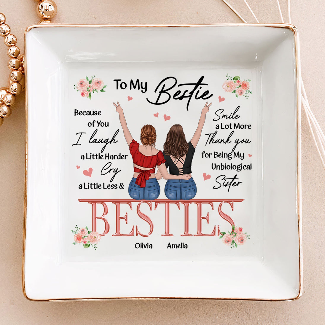 Adorned with a heartfelt message, this jewelry dish is an ideal gift for your best friend on birthdays, holidays, or just to show appreciation. The customizable touch adds a unique flair, making it truly special. Whether for storing precious jewelry or displaying trinkets, this personalized friendship jewelry dish embodies the essence of companionship and is a thoughtful Christmas or Xmas gift for the women who light up your life.