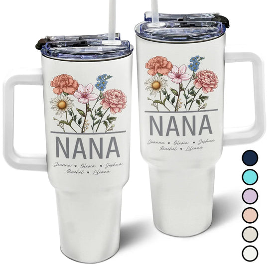 Nana Grandma Mom Birth Flowers - Personalized 40oz Tumbler With Straw