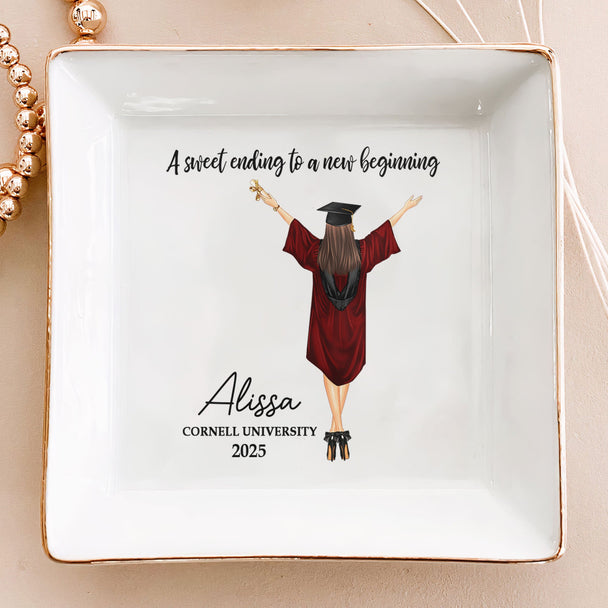 A Sweet Ending To A New Beginning - Personalized Jewelry Dish - Graduation Gift