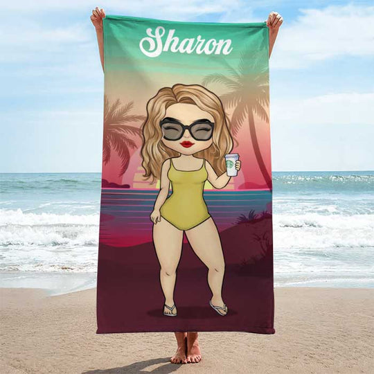 Tropical Summer Sunset - Personalized Beach Towel - Gift For Bestie