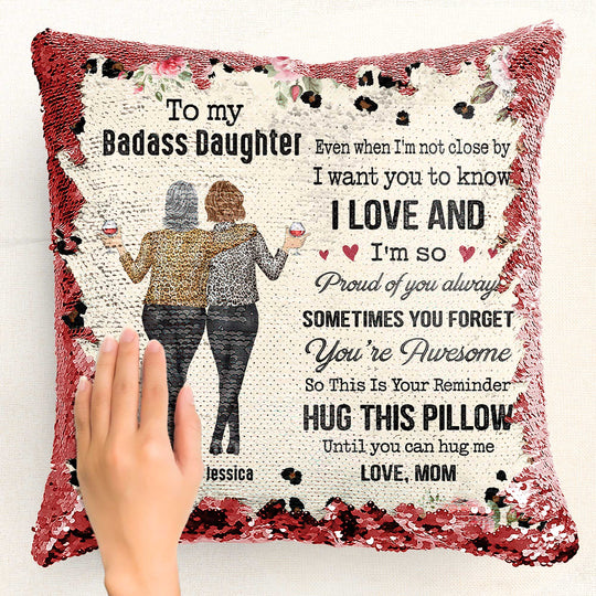 To My Daughter Gift Hug This Pillow Until You Can Hug Me - Custom Sequin Pillow
