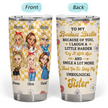 Brighten up the day with the Because Of You I Laugh A Little Harder Women Best Friends - Personalized Tumbler, an ideal gift for besties, sisters, and colleagues on Thanksgiving, Christmas, birthdays, and anniversaries. This tumbler celebrates the joy and laughter shared with close friends and loved ones, making it a unique and thoughtful present.
