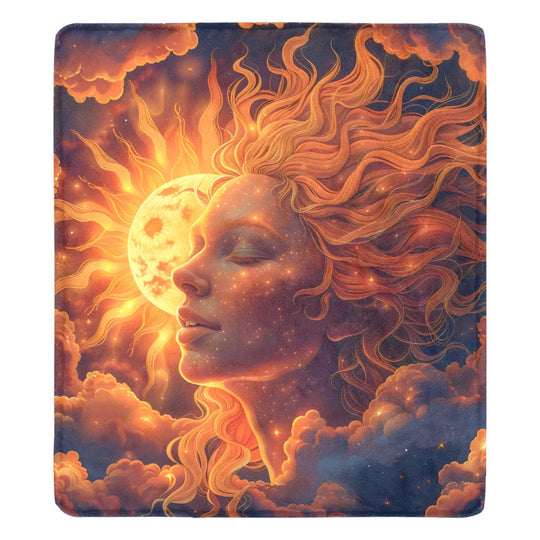 Bask in the radiant warmth of our Celestial Sun Ultra-Soft Micro Fleece Blanket. This stunning design features a serene face enveloped by the sun's fiery glow and surrounded by celestial clouds, evoking a sense of cosmic...Regular price From $35.68 -